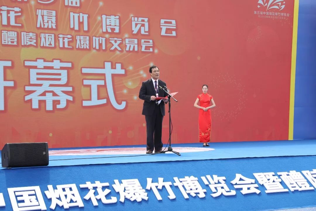 “我宣布,第三届中国烟花爆竹博览会暨2018醴陵烟花爆竹交易会开幕!”何朝晖宣布花炮博览会开幕。