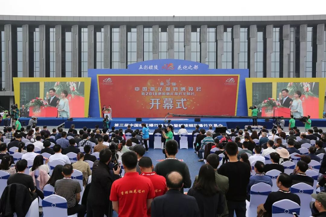 4月27日上午,第三届中国烟花爆竹博览会暨2018醴陵烟花爆竹交易会在中国陶瓷谷国际会展中心隆重开幕,来自全国花炮主产区的310家花炮企业, 以及国内外的2000余名领导、嘉宾,因为花炮,齐聚醴陵。